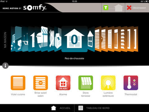 La solution domotique de Somfy TaHoma est une application gratuite, dotée d’une interface de pilotage intuitive, qui vous permet de gérer plus de 100 équipements de la maison, depuis chez vous ou à distance via un ordinateur, une tablette tactile ou un smartphone.