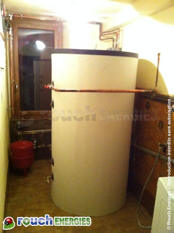 Pour donner plus de confort et d'autonomie aux occupants, nous avons équipé cet insert bouilleur d'un gros ballon tampon de 800 litres.