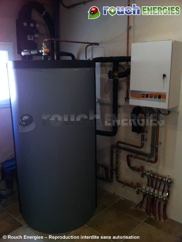 Evidemment, on ne chauffe surtout pas le ballon tampon avec la chaudière ! Elle ne chauffe que l'eau du plancher chauffant, jamais l'eau "de stock".