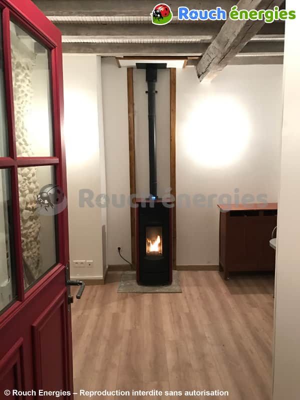 Le reste du château est équipé d'un chauffage central avec chaudière à granulés, mais pour le pigeonnier converti en gîte, le poêle à granulés s'est avéré une meilleure option.