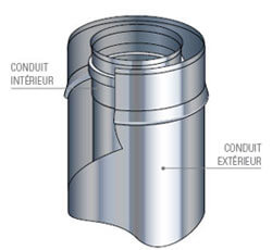 Les fumées et l’air comburant sont transportés à l'intérieur d'un même conduit concentrique : les fumées sont évacuées par le conduit central, au contact duquel s'échauffe l'air comburant qui est acheminé par le conduit externe.