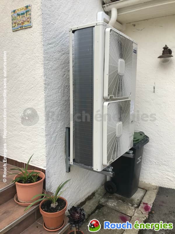 Raccordée à un système de chauffage central fonctionnant sur radiateurs, et compte tenu des déperditions thermiques de la maison, cette pompe à chaleur HITACHI, ici à Bénagues, affiche un SCOP, ou COP saisonnier, de 4,93.