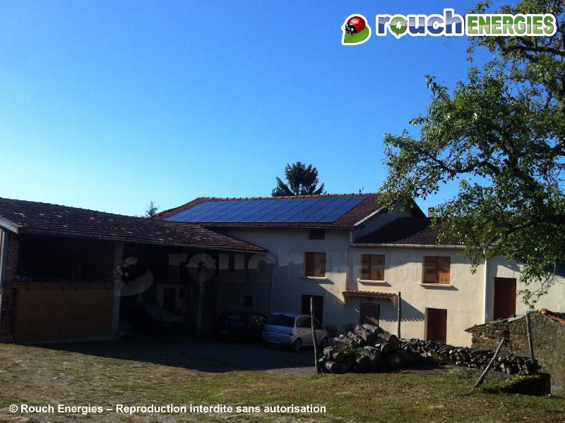 Ici au Sautel en Pays d'Olmes en Ariège, nous avons installé ces 36 modules photovoltaïques bi-verre de Solarwatt, pour une puissance totale de 9 kWc, sur cette ferme ancienne.