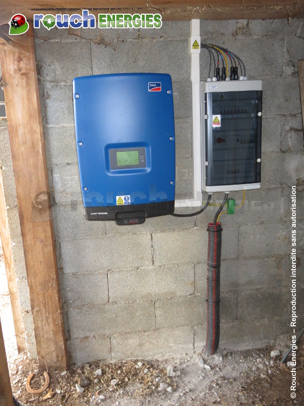 Onduleur : SMA Sunny Tripower STP8000-TL, un des plus performants du marché, avec un rendement nettement au-dessus de la moyenne des onduleurs de même puissance.