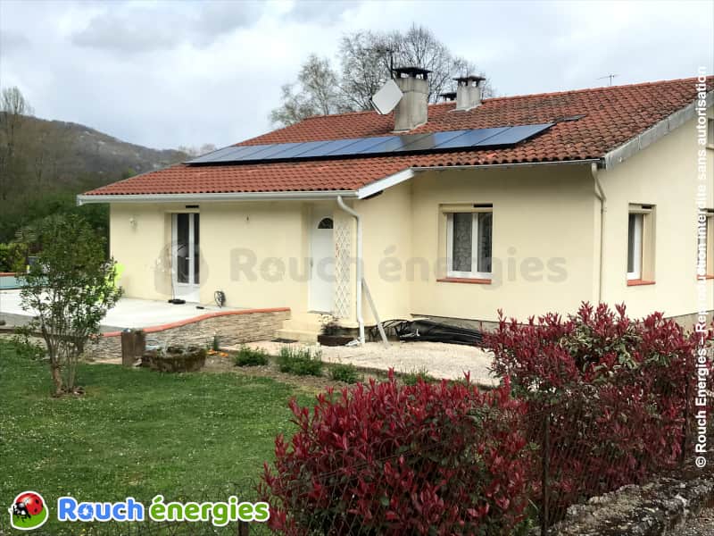 Ici à Montgailhard, près de Foix en Ariège, nous avons installé ce solaire photovoltaïque pour l'autoconsommation avec vente du surplus.
