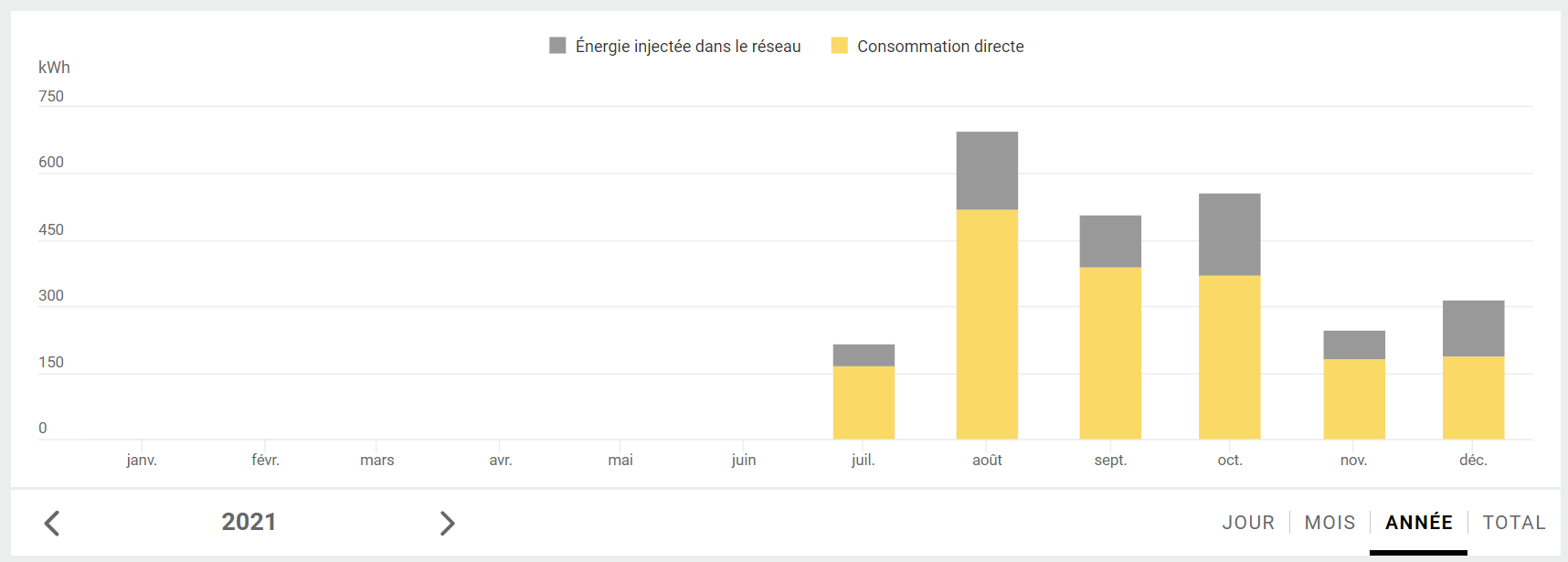 De fin juillet à fin décembre, 72% de l'électricité photovoltaïque a été consommée localement :-)
