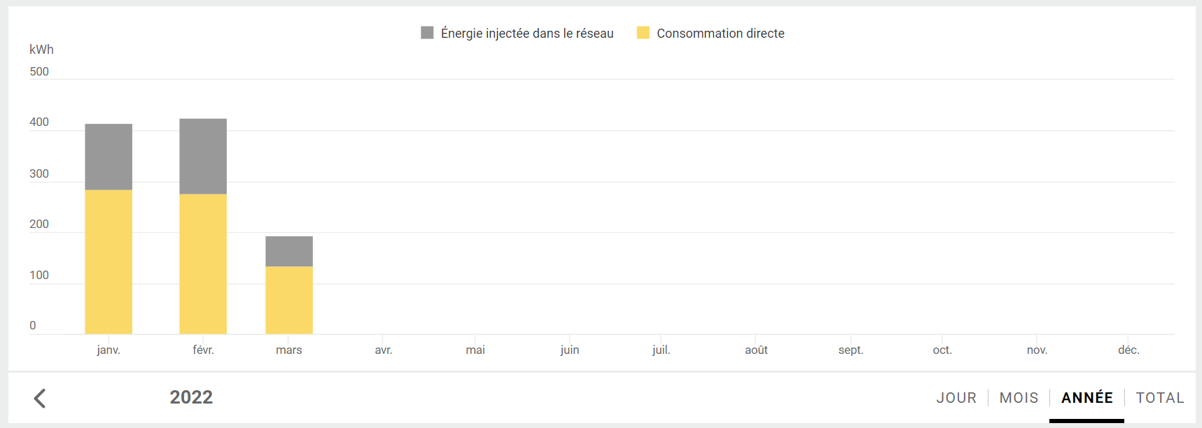 De janvier à mi-mars, 67% de l'électricité solaire produite a été autoconsommée directement sur place par la maison :-)