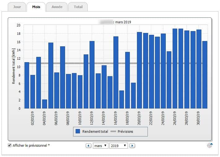 Ici l'affichage est réglé sur la production mensuelle.