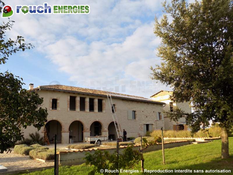 Ici près de Castelsarrasin, dans le Tarn-et-Garonne, cette installation photovoltaïque est composée de 22 modules Solarwatt Vision biverre de 270 Wc, montés sur le système d'intégration au bâti Easyroof, conçu développé et fabriqué par l'entreprise française IRFTS.
