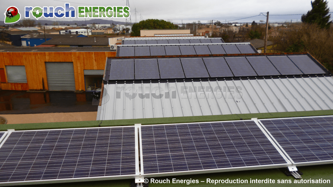 Ici à Pamiers en Ariège, à deux pas de nos anciens locaux, nous avons réalisé une double installation : 3 kWc pour l'autoconsommation, et 9 kWc pour l'injection réseau.