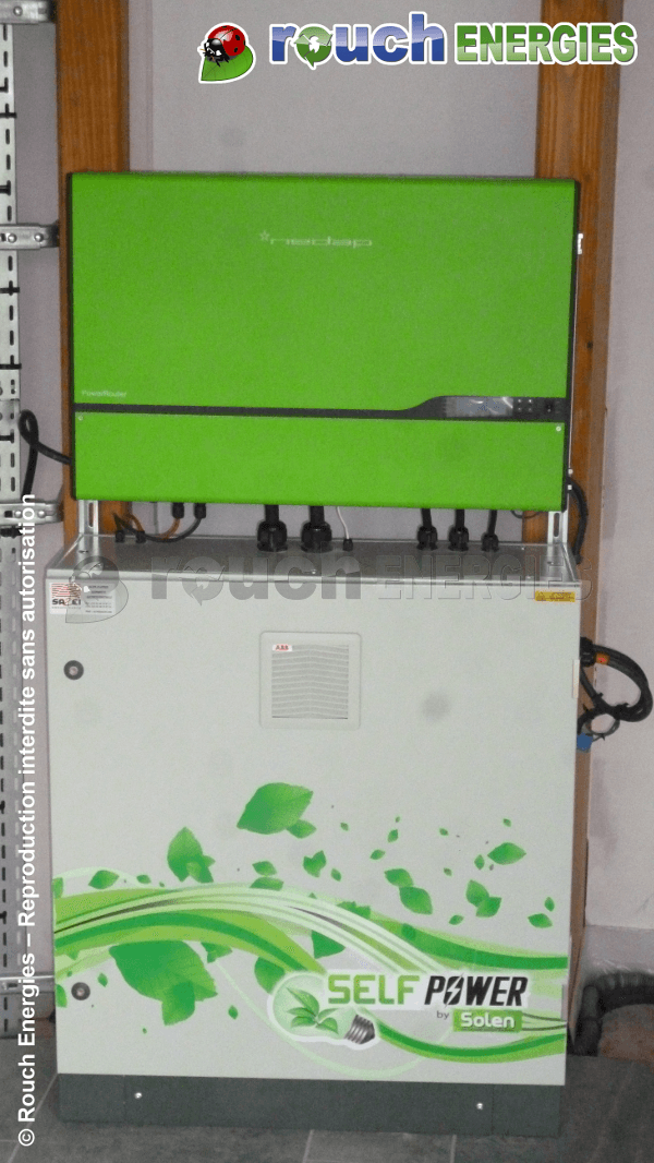 Lorsque la consommation est inférieure à la production photovoltaïque, SelfPower dirige l'électricité photovoltaïque en surplus vers les batteries situées en partie basse dans l'armoire.