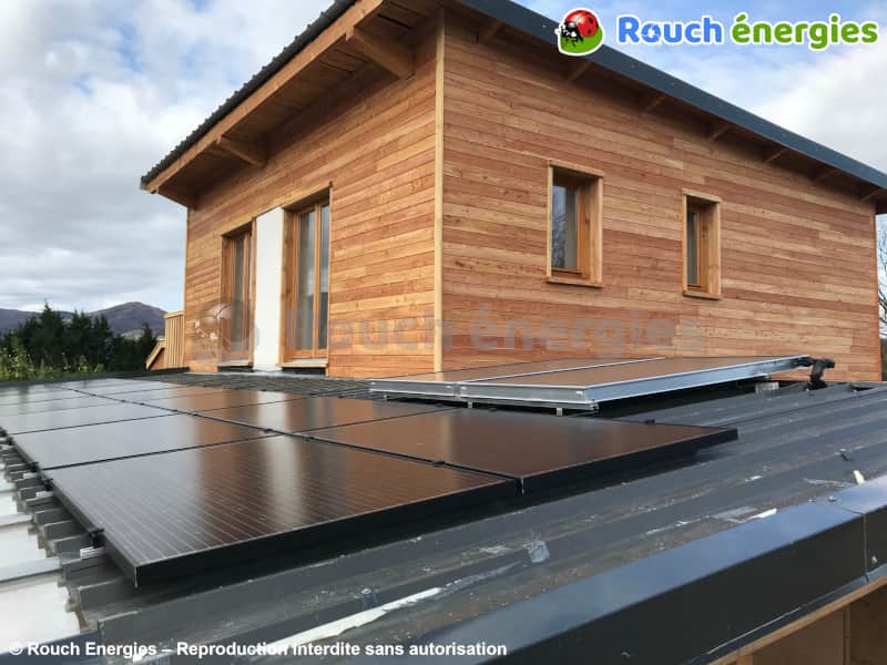 Ici à Saint-Pierre-de-Rivière, près de Foix en Ariège, nous avons équipé la maison bioclimatique de nos clients avec un solaire photovoltaïque sur batterie et un chauffe-eau solaire.