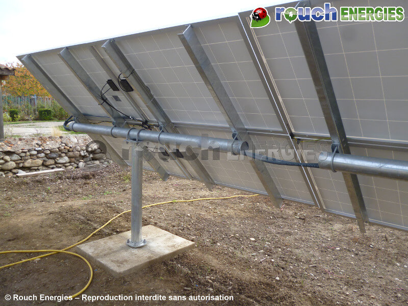 Ce châssis pivote en effet sur un seul axe, ce qui permet de modifier l'inclinaison des panneaux selon 3 degrés d'inclinaison différents, adaptés aux différentes saisons et à la hauteur du soleil sur l'horizon correspondante.