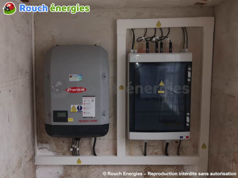 Nous leur avons donc installé 30 modules photovoltaïques bi-verre 60M HP de Solarwatt, de 300 Wc chacun, soit une puissance totale de 9 kWc, un onduleur de 8,2 kW, le Fronius Symo 8.2-3-M et un boîtier de suivi Tecsol-TIC LoRa.