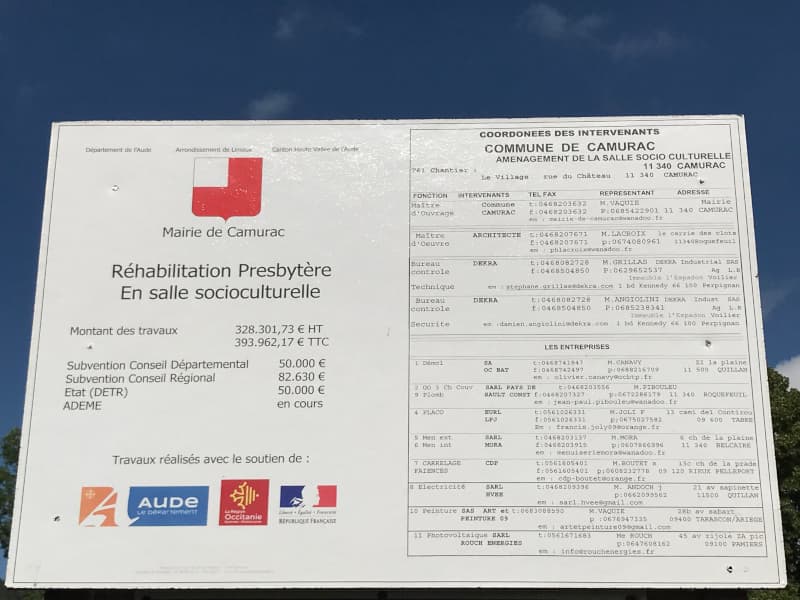 Ce projet, dont le coût global, démolition incluse, s'élève à 390 000 €, a été subventionné à 50% par l'Etat via la DETR, la Région Occitanie et le département de l'Aude. Les entreprises ont été sélectionnées au terme d'un marché de travaux, en procédure adaptée (MAPA).