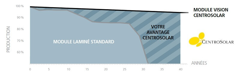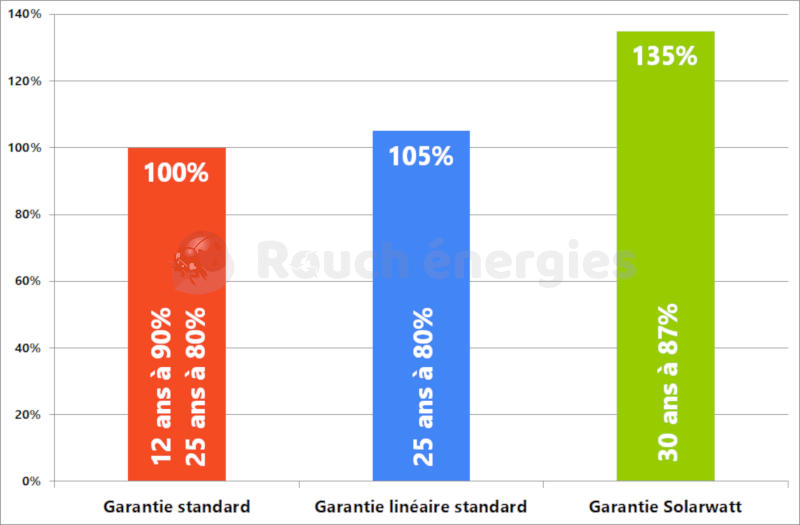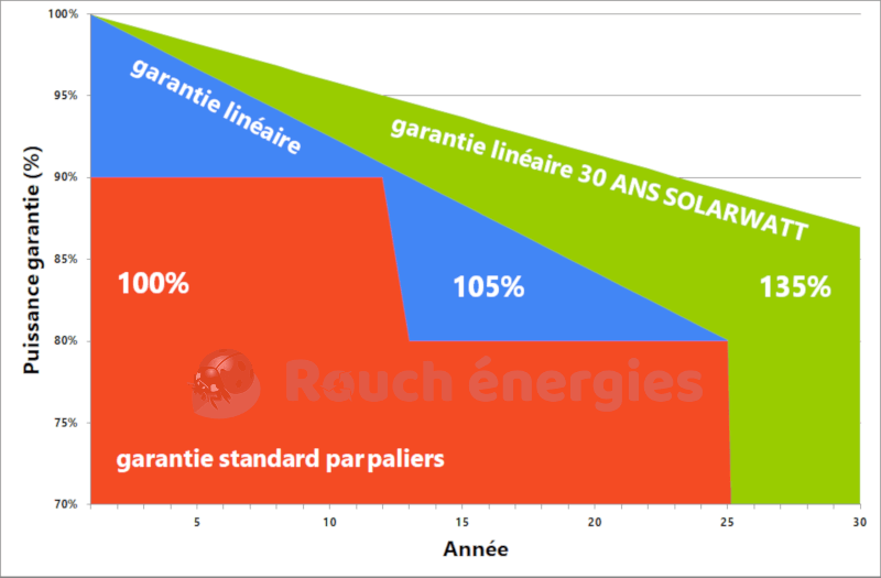 La garantie de rendement est linéaire, dure 30 ans contre 25 ans habituellement, et assure 87% de la puissance nominale au lieu des 80 % conventionnels !
