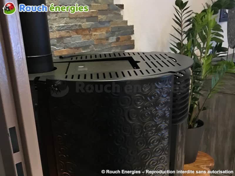 Particularité principale, la sortie des fumées concentrique intégrée sur le dessus du poêle.
