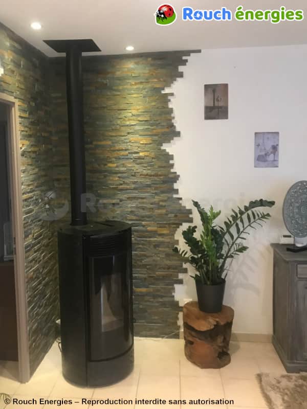 Ici à Varilhes, entre Foix et Pamiers en Ariège, nous avons installé ce poêle à granulés CMG Borea de 8 kW.