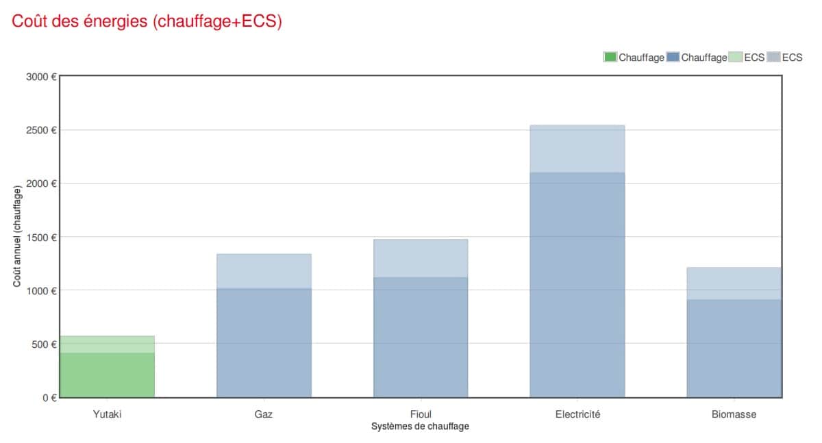 La comparaison des différentes énergies de chauffage est affichée dans le rapport de dimensionnement Hitachi que nous remettons à nos clients en même temps que notre devis.