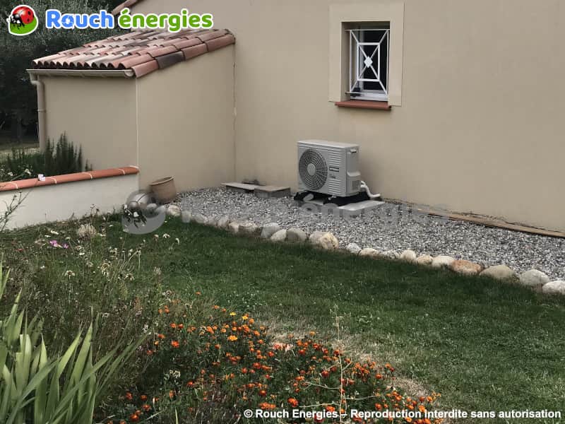 Et en plus, la pompe à chaleur installée ici fonctionne au nouveau fluide frigorigène R32 dont le pouvoir de réchauffement climatique est 3 fois inférieur à celui de son préécesseur R410.